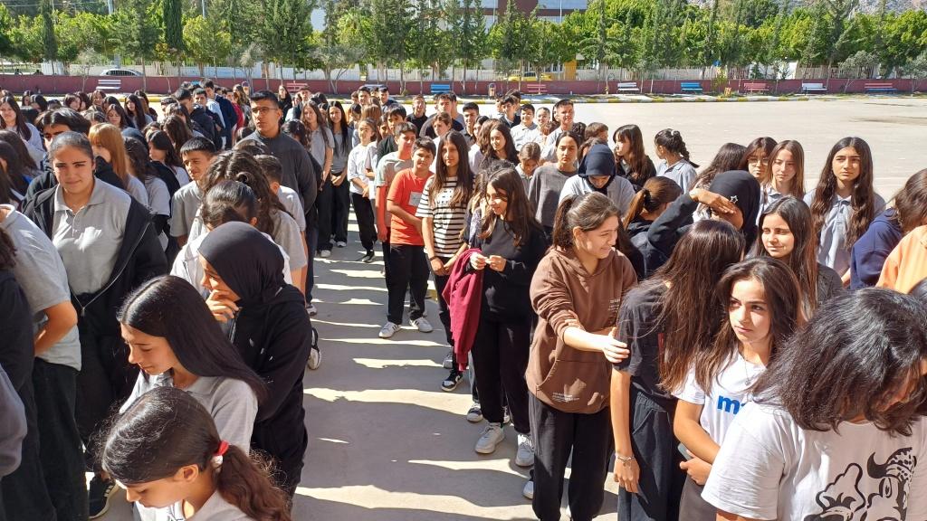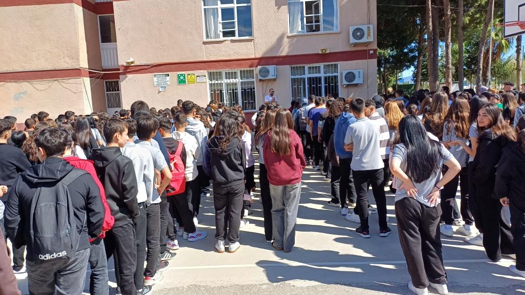 13 Ekim Uluslararası Afet Risklerinin Azaltılması Günü münasabetiyle okulumuzda deprem ve doğal afet konusunda farkındalık oluşturma amacıyla etkinlikler düzenlenmekte olup bu kapsamda Okul tahliye tatbikatı yapılmıştır.Tatbikat sonrası öğrencilerimiz bu konuda bilgilendirilmişlerdir.
